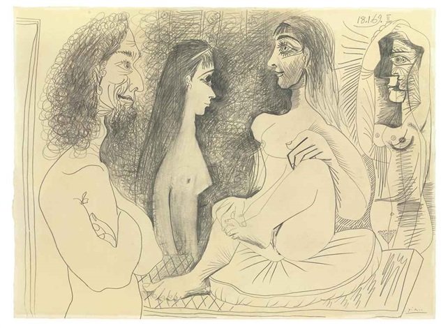 Image: Pablo Picasso’s Trois femmes nues et buste d’homme (1969)